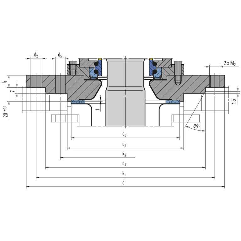 The series for unstepped shafts (all diameters) and connection diamentions not covered by DIN. Customized design or e.g. different drives (torque transmissions) are available.