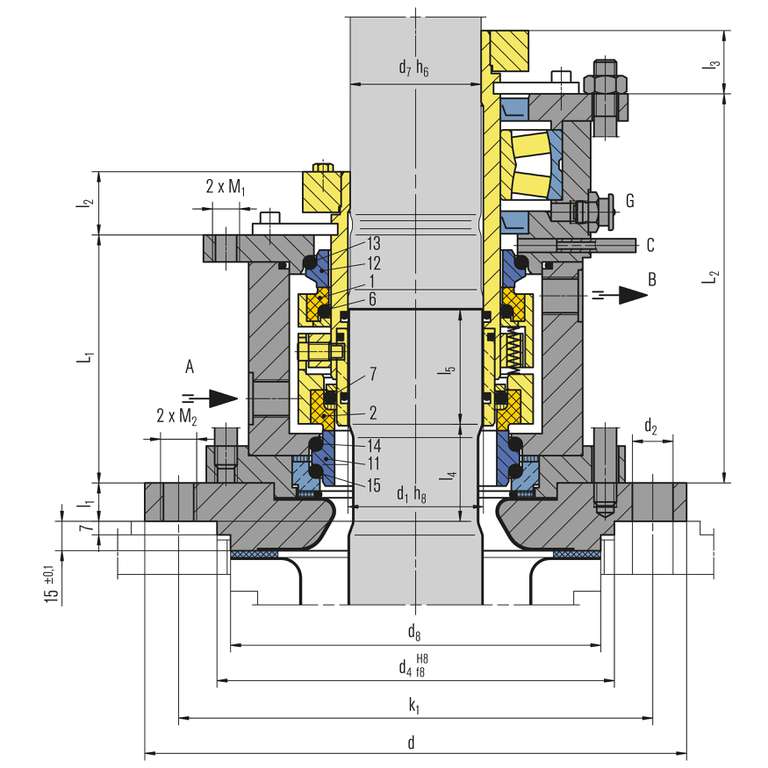 • The seal can be lifted off the glass-lined flange as a complete cartridge. The sensitive glass lined basic flange remains mounted on the vessel.